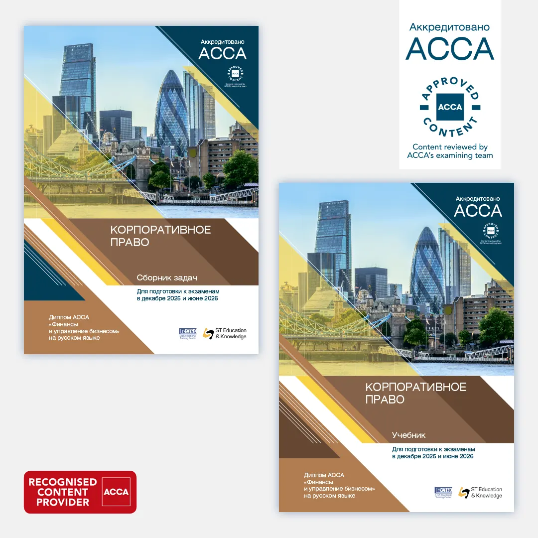 Предлагаем вам учебные материалы для самостоятельной подготовки к экзаменам на получение сертификата ACCA RUS "Корпоративное право" в печатном и электронном виде. Учебные материалы разработаны Учебным центром "СТЕК" на русском языке и полностью соответствуют требованиям ACCA для подготовки студентов к сдаче экзаменов по программе Диплома АССА "Финансы и управление бизнесом" на русском языке